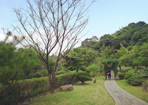 秋日枯枝佇立,這裡整個佔地很廣闊,整片綠地依山而繞,風光無限。在這放慢步調順著石徑小路而行,低頭無處不生風,抬頭又見鳥山空,秋高氣爽的時節,好適合與家人來此增進情感。