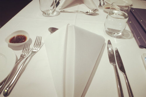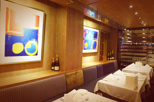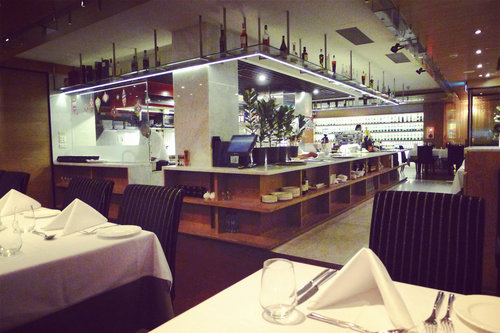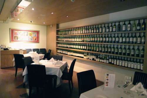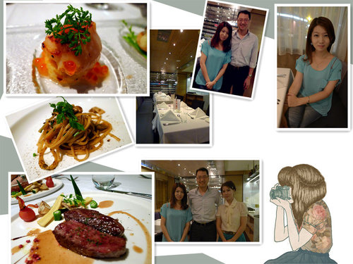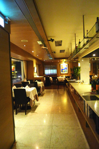 2010年6月的中午與W先生一起相約吃午餐,臨時選了這家餐廳,大片的落地窗映照出街道上來往的人群與車輛,而廚窗中隱約又可以探進正在用餐的人們,微弱的鵝黃色燈光,大理石的潔淨牆面,簡單又氣派的高雅讓人不禁想一窺這家餐廳的魅力。