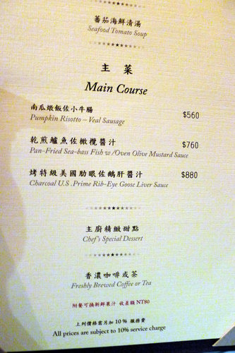 晚餐的價位比較貴一些,中午來吃的話1000元有找。晚餐以套餐為主選擇性不多。我點了第二樣套餐。