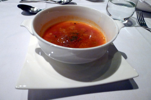 沒想到這道湯品上桌時正有點納悶為何湯料的份量有些少,過沒多久小妹也有一碗一模一樣的湯品,我突然覺得這家餐廳好貼心,知道我們會分食所以事先主動的幫我們分裝好,各有各的碗盤與湯碗,很少見到餐廳的服務會這麼的細膩,用餐之時也常過來做詢問是否有需要哪些服務,服務人員的品質之高突然讓我覺得很難得及開心。服務人員千萬不要因為自己是服務業,覺得對客人的服務僅止於送餐與收拾,對於貼心的詢問及問題的回答,都關係著餐廳的名聲與服務品質,一個好的專業服務人員是細心及體貼的,這頓晚餐在愉快及輕鬆的氣氛下進行著。