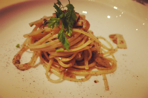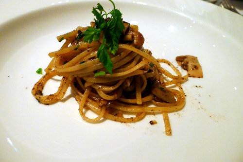 磨菇松露義大利麵-單點要500元以上。小妹說她第一次吃到那麼好吃的義大利麵,又問這到底是怎麼做的?自己也可以做的出來嗎?哈哈沒這麼棒怎麼在仁愛路這個高級地段開餐廳,沒有真材實料又怎麼贏得顧客的芳心。