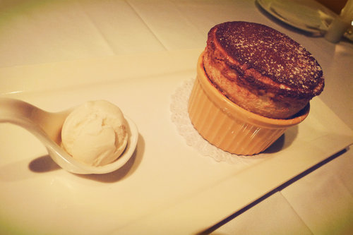 現烤的舒芙雷-服務人員建議要趁熱吃。把左邊的冰淇淋放進去舒芙雷的中間(先挖個小洞)