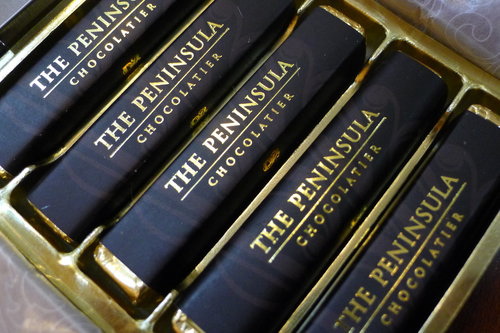 半島酒店的巧克力走高貴質感,一小盒裡才只有五小條。