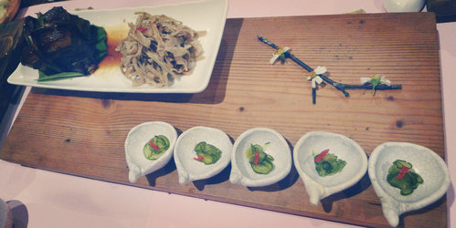 前面送上來的小菜。這家以養生料理為主,而且很多菜是自種自賣。不過可惜的是最旁邊的秋葵(右邊這道)有三個人不吃>"<