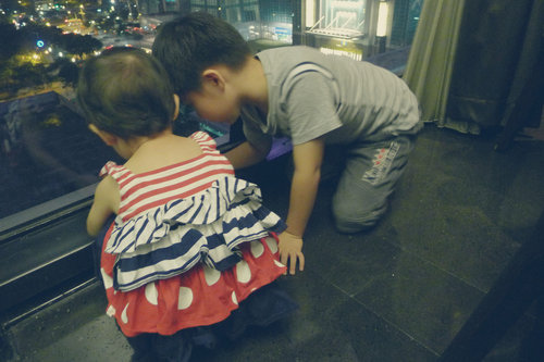 寶貝們都吃很飽也吃好多喔!入夜了外面的景色很美麗。