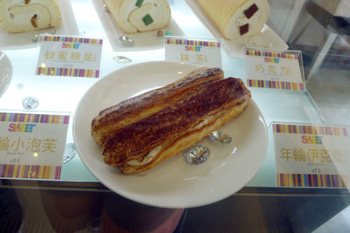 珍珠年輪蛋糕據說是不間斷的二個小時烘焙製成可以烤出21層的年輪,小小一塊大約要四百多元,一片單價也要七十多元,價位中上。