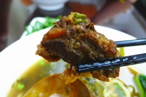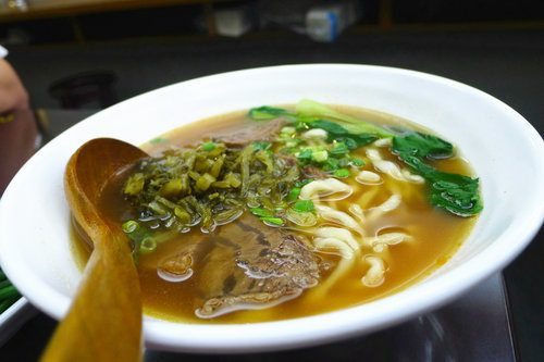 我好喜歡牛肉麵加上酸菜的口感。