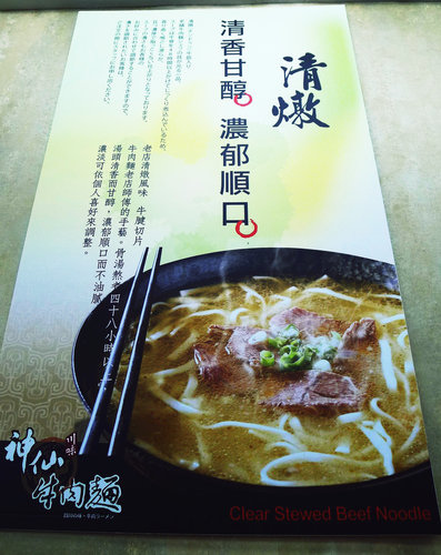 試吃了神仙牛肉麵,他的紅燒牛肉麵湯頭味道不錯,比清燉更香,但肉質上因為選用的牛肉部位不同所以咬起來偏硬,反而是清燉所選的牛肉部位較軟嫩。