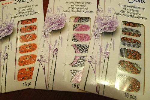 左邊是逛的第二家商品,因為第一次貼所以貼壞了,旁邊指緣不是很服貼。右邊則是逛的第一家商品,不知是哪裡進口的(反正不是大陸就是韓國),右邊的服貼度比較好,價格也比左邊的便宜一半。左邊的設計是台灣製的(所以一包是100元),右邊因為有殺價平均下來大概60元。