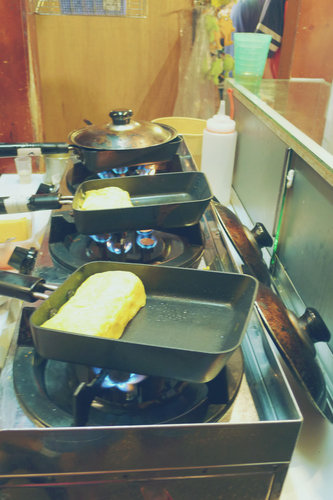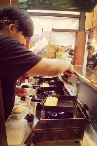 看著年輕人創業真是不簡單啊!不過煎玉子燒也是需要技術的,而且還是現點現煎現吃喔!需要排隊的時間大約是15分鐘左右。