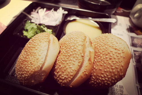 繼光餅(本來以為很大份結果是小小的一個),建議將燙好的肉片連同洋蔥絲及香菜夾在一起吃,味道還不錯喔!整體吃完的感想是,蔬菜類有些略少,醬汁不夠濃厚,但肉品及甜點表現挺亮眼的。