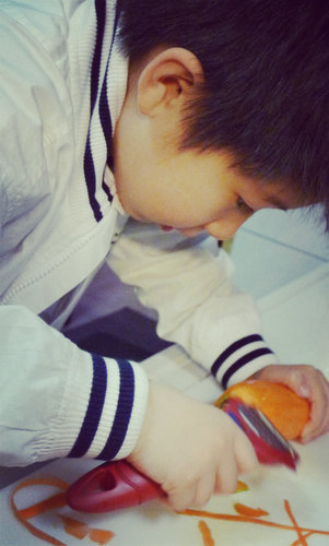 前些天讓孩子自己動手削蘿蔔,切蕃茄,趁他還願意幫忙時盡量讓他參與,也總比長大後有了他自己的生活對家事變的漠不關心,我喜歡大家分工合作一起把事情做好的感覺。這一碗牛肉麵有孩子切的蔬菜有先生去買的牛肉與麵條,還有我守了三小時的時間愛心滿滿呀!