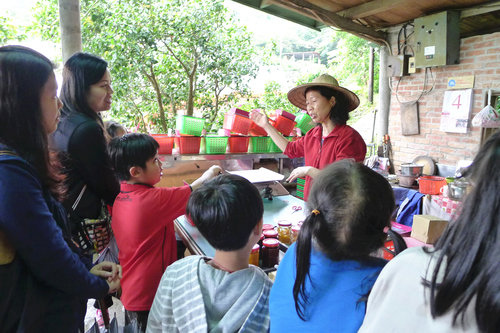 行程內容是園區生態導覽/草莓果醬自製/農家午餐/竹器童玩DIY/採果—500元/人