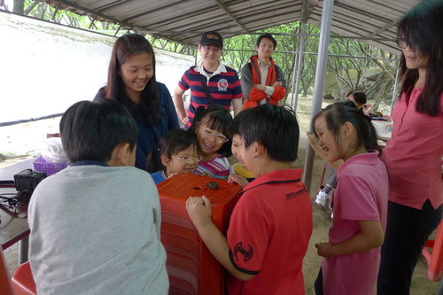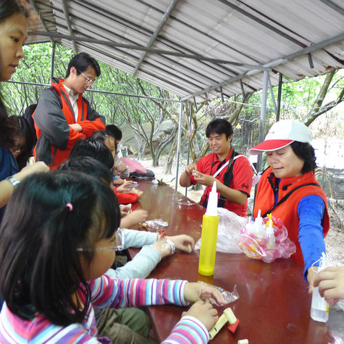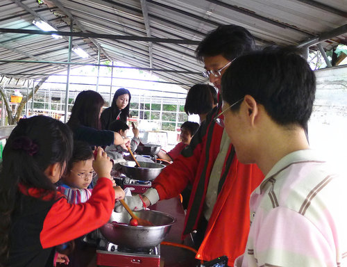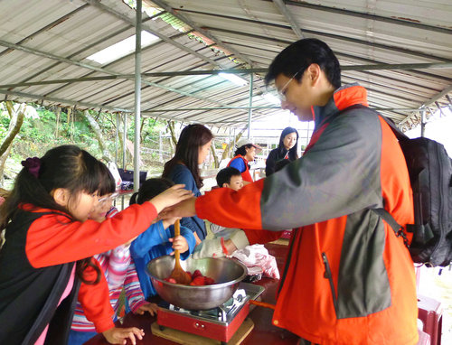 女生組很團結唷!三個人一齊數數字,一下用中文數一下用英文數。男生嘛則是輪流等待交換攪拌。