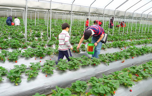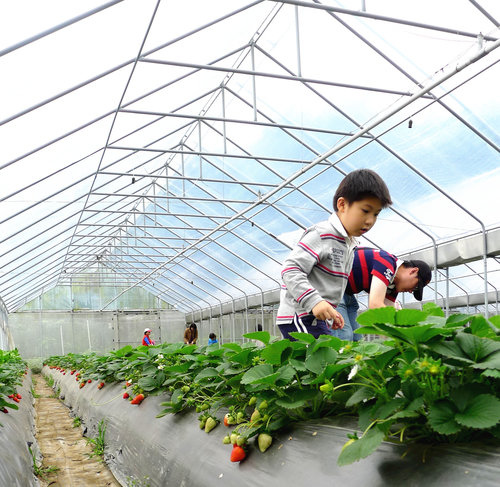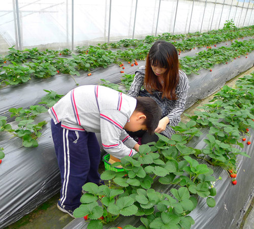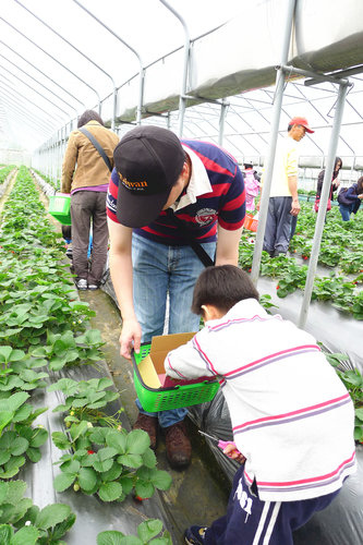 與爸爸及媽媽一起選草莓。