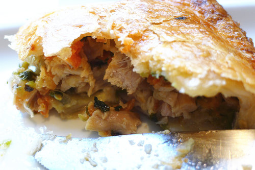 切開後的斷面秀。裡面有很多料切的碎碎的,整個吃起來果然有異國的風味。