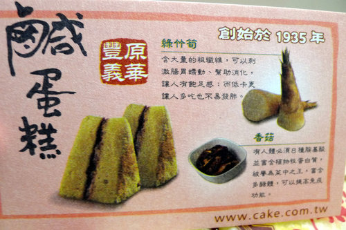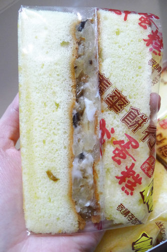 好有口福喔!怎那麼多好吃的糕點^^這個鹹蛋糕大概是我有生以來第一次的嘗試吧!這個傳統美味的產品出自於豐原的老字號義華,師傅改良傳統式的作法讓蛋糕吃起來更綿密,裡面有紅蔥頭、蝦米以及香菇、綠竹筍做為內餡,做成三明治的造型。