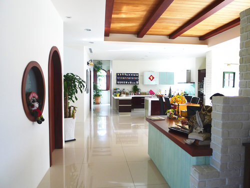 羽過天輕有著地中海的風情,也有歐洲鄉間小路上的建築特色,在藍色晴朗的天空下整間獨棟的建築物讓人感到夢幻與綺麗,而裡面的裝潢是以米白與暖黃的色調做搭配,可愛的童趣擺飾品做點綴,鄉村與復古的溫馨質感讓人來到這裡就像在家裡一般的輕鬆自在 我們下次還要再來玩!!