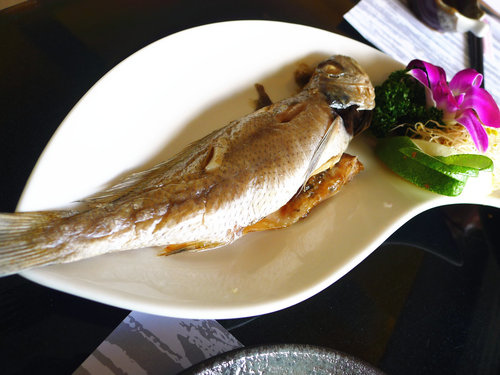 這道一上桌就讓我驚喜連連。利用當天現釣的魚貨來作開胃小菜,顏色繽紛,還沒吃進嘴巴裡已經胃口大開。沒有服務生的介紹,自己慢慢享受與品嚐在地的美味料理。平時以牛排類居多的餐食,難得來吃海鮮我卻對海鮮類感到有些怯生