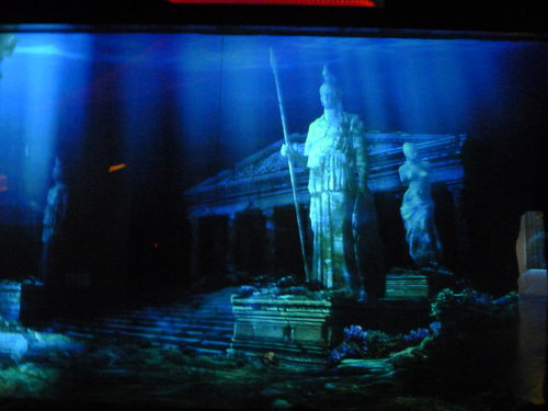 三樓是一大片的布幕,牆壁上有海底的景色。澳門的飯店大廳也有這樣的場景。其實我對3D鬼船比較有興趣啦!聽同事說他們去鬼屋真的有被嚇的哇哇叫,導遊明明說那些鬼不會碰到人,但是會靠你靠的很近很近,我同事被嚇的歇斯底里了。因為我們跟他們玩的性質不一樣(我們以小朋友為主),所以最後是各自玩各自的。