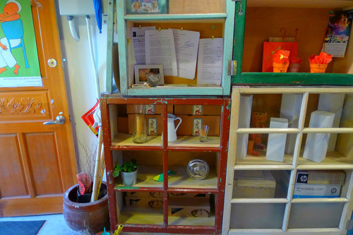 窗櫃能讓我們穿梭記憶的時光。斑駁掉漆的窗架裡有一些關於藝術的收藏。