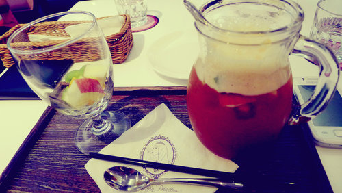 我桌上這杯是冰咖啡~我則點了水果茶。