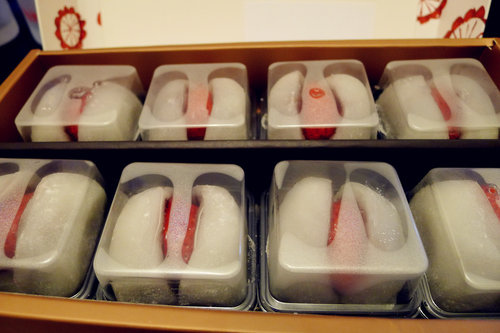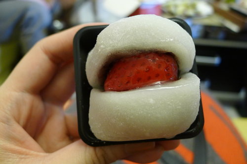 裡頭包草莓與紅豆,QQ軟軟冰冰涼涼,甜中帶酸好咬勁!