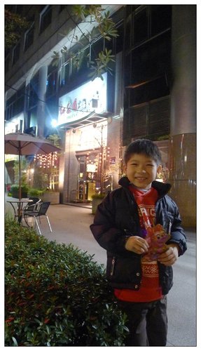 我的帥寶貝今天笑的好開心唷!而且手上還拿著一隻小龍的年節紙卡,在花市時我沒打算買給他,沒想到後來老爸去追加春聯時還是買下來送給他,疼兒子的老爸。雖然沒多少錢但我知道熱潮一過一定又不知丟哪去了>"<