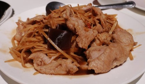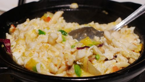 這道菜是新菜,上桌時一顆黃澄澄的蛋黃就擺在中間,服務人員會先幫你攪拌好,裡頭有豆腐也有鹹蛋還有魚肉,口感很不錯,鹹蛋蛋黃的口感與豆腐及魚肉相互交疊,軟嫩適宜加上一些白醋又有另一種風味,實在好吃!