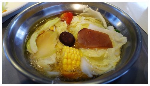 菜盤跟以前比起來少了很多料,我記得以前還有我最愛吃的芋頭,大概物價成本反應,菜盤跟以前比起來沒那麼豐富了但是還是很新鮮看起來也很乾淨。