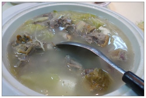 烤鴨三吃裡的一道烤鴨酸菜豆腐湯。
