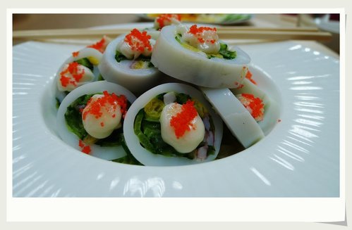 用花枝料理的龍蝦再佐以沙拉醬好吃!
