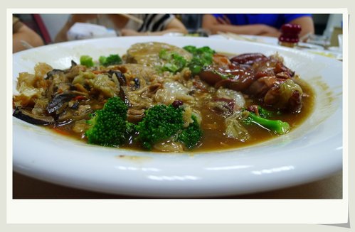 上了幾道菜我忘了也沒特別去注意菜名。下面這道是用仿烏蔘去料理的口感跟烏嵾很像。