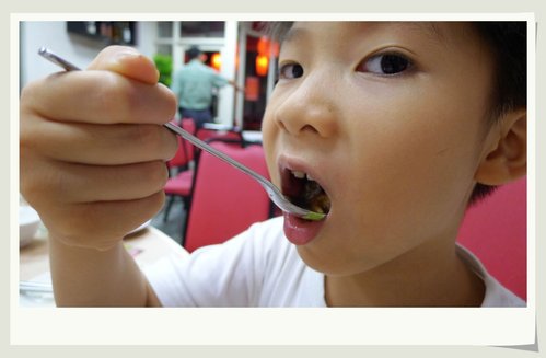 這張兒子在努力嘗試吃小蝦米,海鮮類他不愛龍蝦也不愛吃海參及透抽,只敢吃蛤蜊及魚還有牛肉,今天大多是海鮮類的所以他吃的不算多
