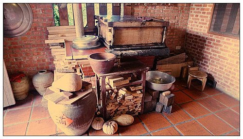 坐在矮蹬上準備著一家人的三餐,爐灶裡的火正悉悉梭梭的竄起,煙瀰漫著,美味也正擴散