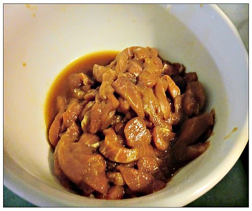 作法1.醃肉(肉絲/雞蛋/醬油/太白粉抓勻醃五分鐘)報紙上是寫一顆蛋但我只用蛋黃而已。
