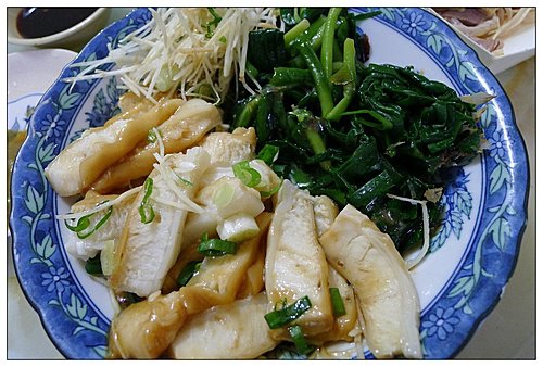 另外我又叫了鯊魚煙及韭菜。配上哇沙米醬汁真是美味。阿里港的小菜很多加上一碗招牌切仔麵更是大大的享受!不過價格是偏高了一點但料很實在是真的!