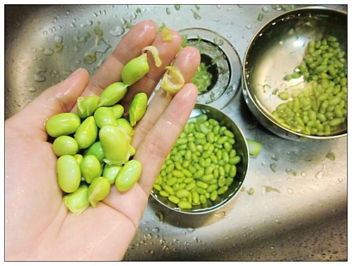 作法:先把毛豆洗乾淨(不要淨泡)我還一面剝去外面透明的殼洗了好久。