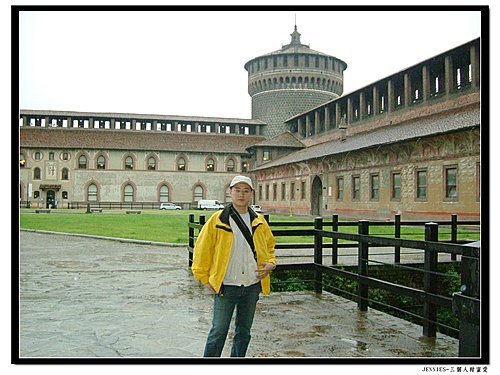 我們接著前往市區,欣賞由一代文藝復興大師達文西所參與設計的史佛薩古堡,今日不巧的下起小雨