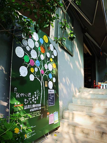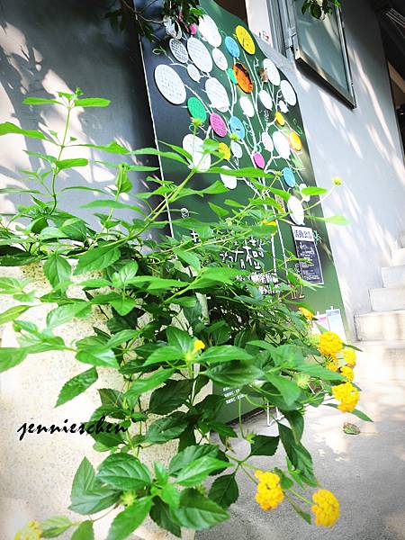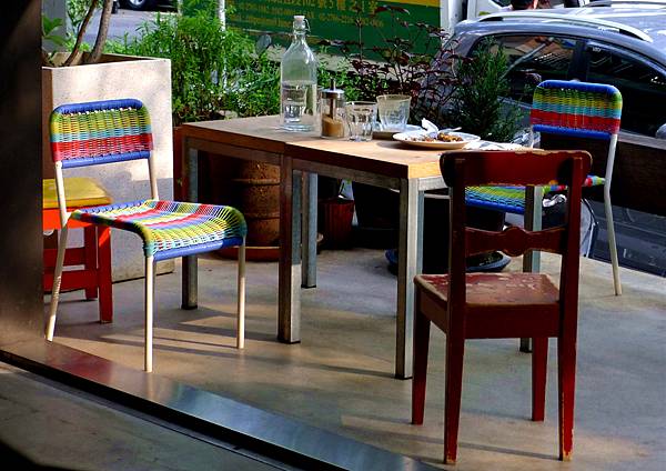 門口前的彩色桌椅顯得活潑有趣。
