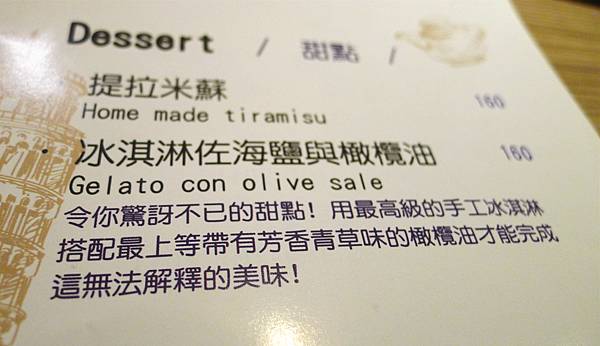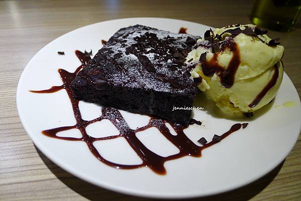原本想要點這道冰淇淋佐海鹽與橄欖油,感覺好特別喔!不過後來店家推薦我們點了最近新開發的甜點-巧克力冰淇淋布朗尼。待分享!