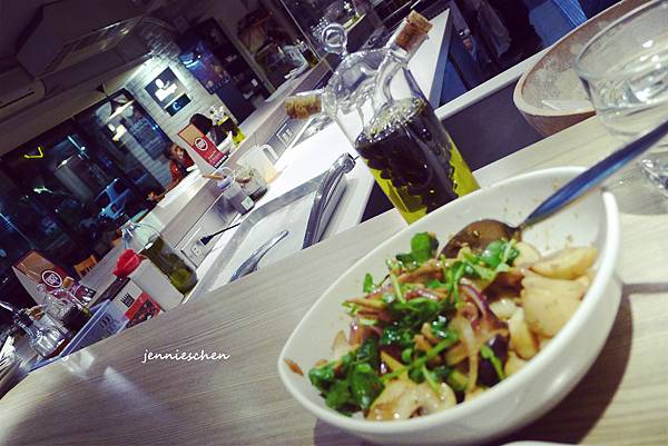 餐館裡雖然不大,但井然有序,坐在吧檯上迎面而來的是開放式的工作檯面。坐在木質長桌前,微暖的燈光映照在食物與餐盤的上面,嗯..一切真的很美好!由其是最近做什麼事都好幸運的我^^