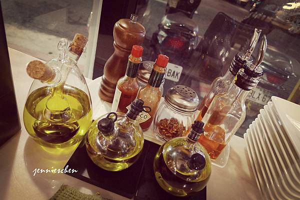 眼前這個小油罐好有趣,金黃色的橄欖油在玻璃罐裡特別剔透晶瑩,罐中罐裡裝的是紅酒醋。日常生活裡,隨處都有小驚喜!