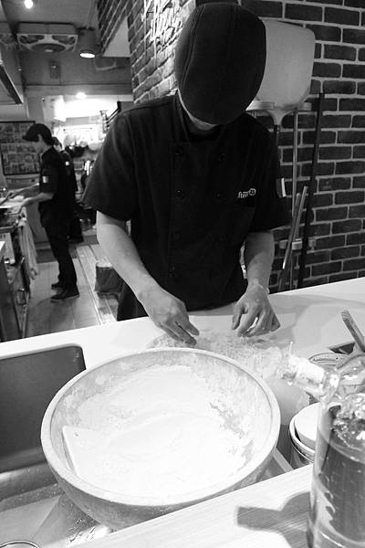 哇!這家是現點現做耶!好專業。而且看著師傅拉著餅皮好像在表演絕技,工夫好厲害。