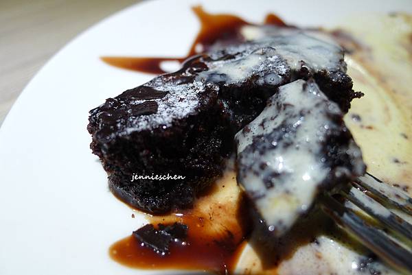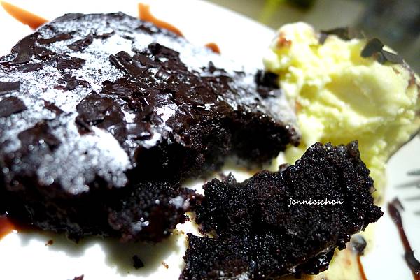 然後搭配冰冰涼涼的香草冰淇淋。巧克力的苦味大概是40%加上香濃卻不致太甜膩的冰淇淋,真的非常好吃!