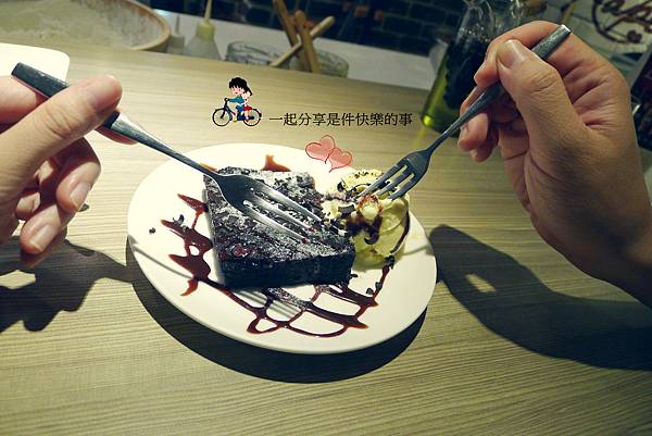 甜點上桌囉~好棒喔!剛做好的巧克力布朗尼切開時還冒的白煙。