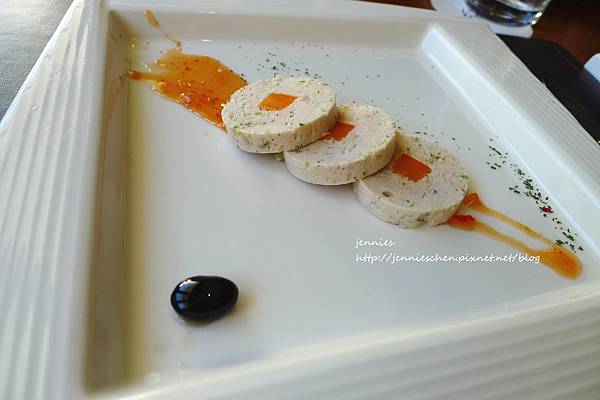 雞肉慕思捲佐酸甜醬 這道吃起來不知算是中式還是西式?錢幣的造型頗特別,象徵著招財進寶之意。但口味上我也覺得普通。