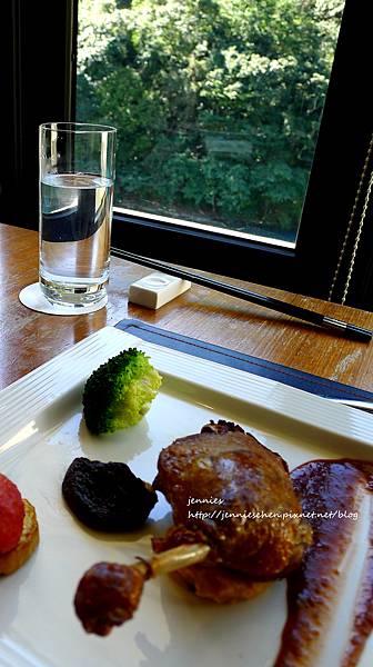 搭上外面的湖景真的還滿美的。午間用餐的客人只有三桌,很安靜的餐廳。