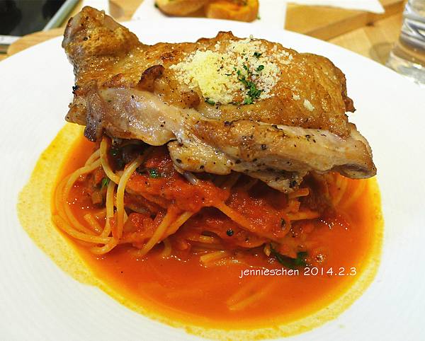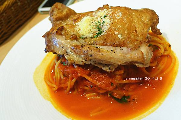 我的烤雞義大利麵來囉~我喜歡他飽滿醬汁及烤雞,烤雞的肉連先生也說好吃!因為雞肉很多汁又鮮嫩~