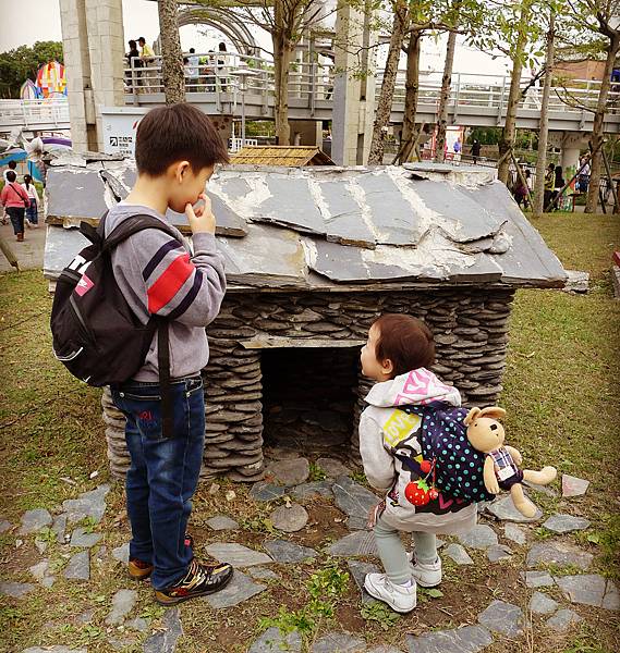 今天也帶小堂妹一起來,孩子有伴玩的很開心呢!咦?這是三隻小豬的家嗎??